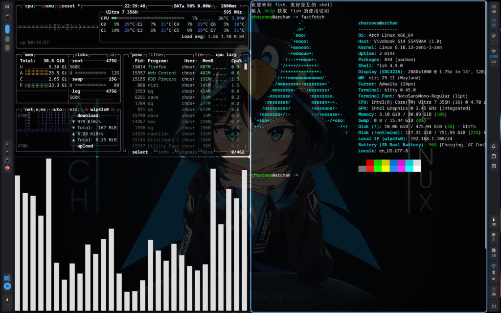 物理机archlinux+niri配好了